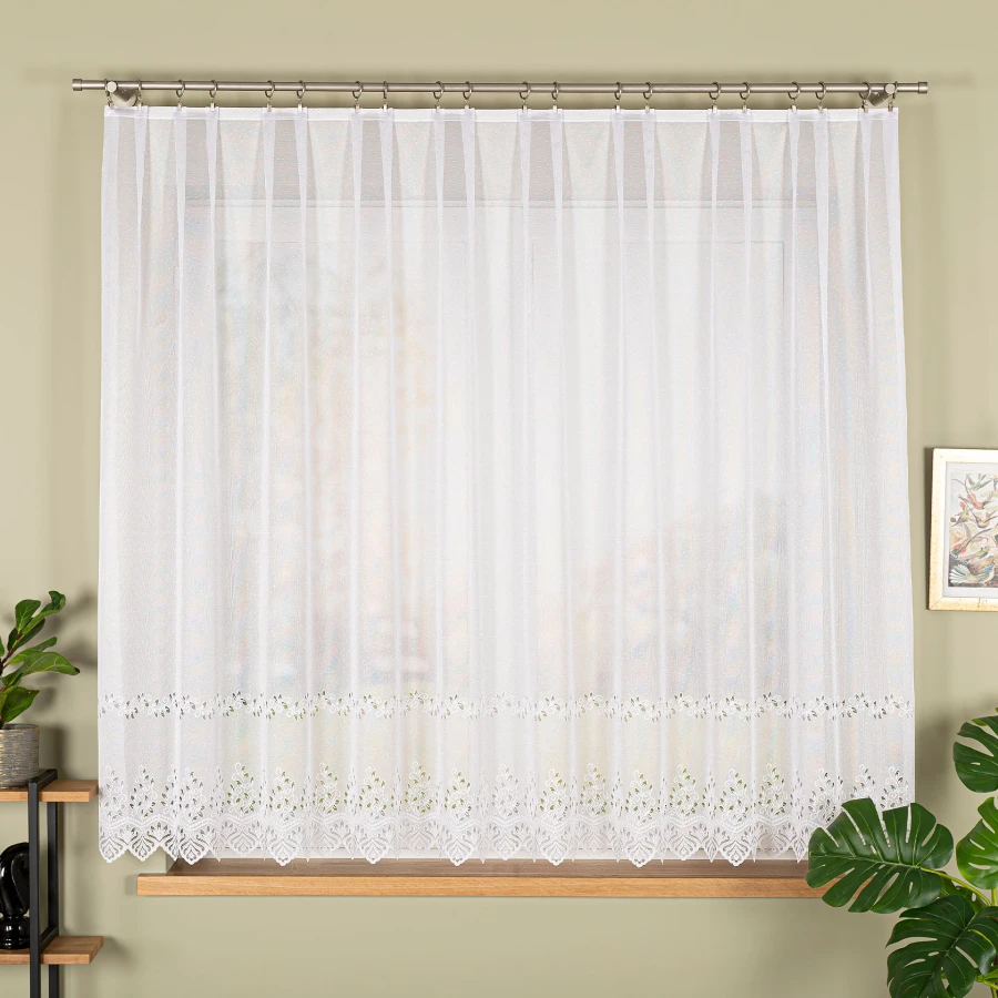 - Trwałość i łatwość pielęgnacji: Materiał jest niezwykle wytrzymały i odporny na zaciągnięcia. Nawet po wielu praniach firanka zachowuje swoją śnieżnobiałą barwę i nienaganną strukturę.