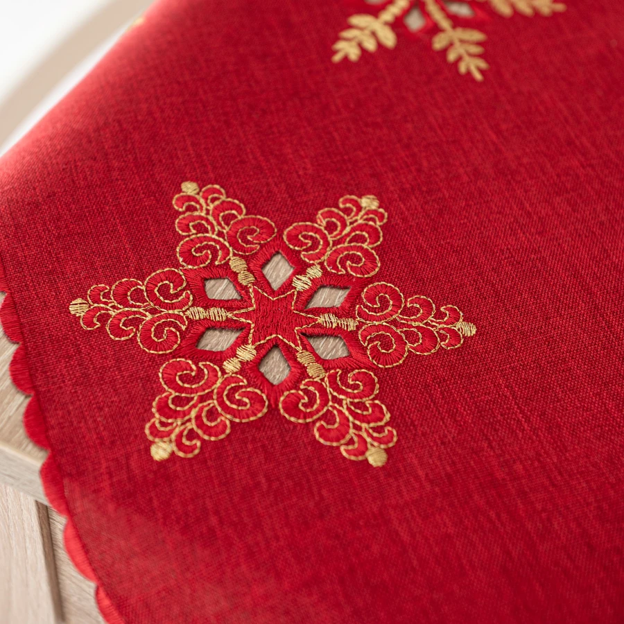 Elegancka i praktyczna serweta z wysokiej jakości tkaniny poliestrowej.Serweta haftowana z błyszczącą nicią.Serweta jest wykończona na brzegach wąskim haftem. Rozmiar: 85x85 cm Gramatura: 200gsm Skład: 100% Poliester