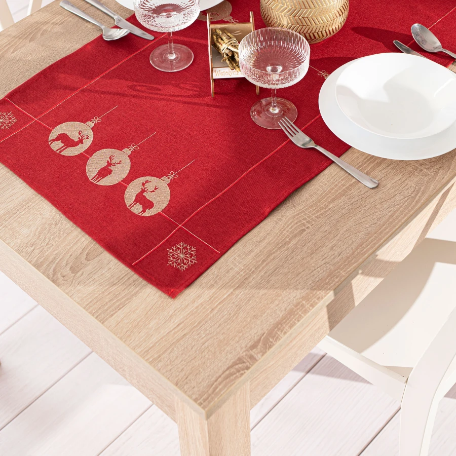 Elegancki i praktyczny bieżnik wykonany z wysokiej jakości tkaniny poliestrowej.Bieżnik w dekoracyjny haft z błyszczącą złotą niciąWykończony na brzegach wąską listwą. Rozmiar: 40x140 cm Gramatura: 200gsm Skład: 100% Poliester