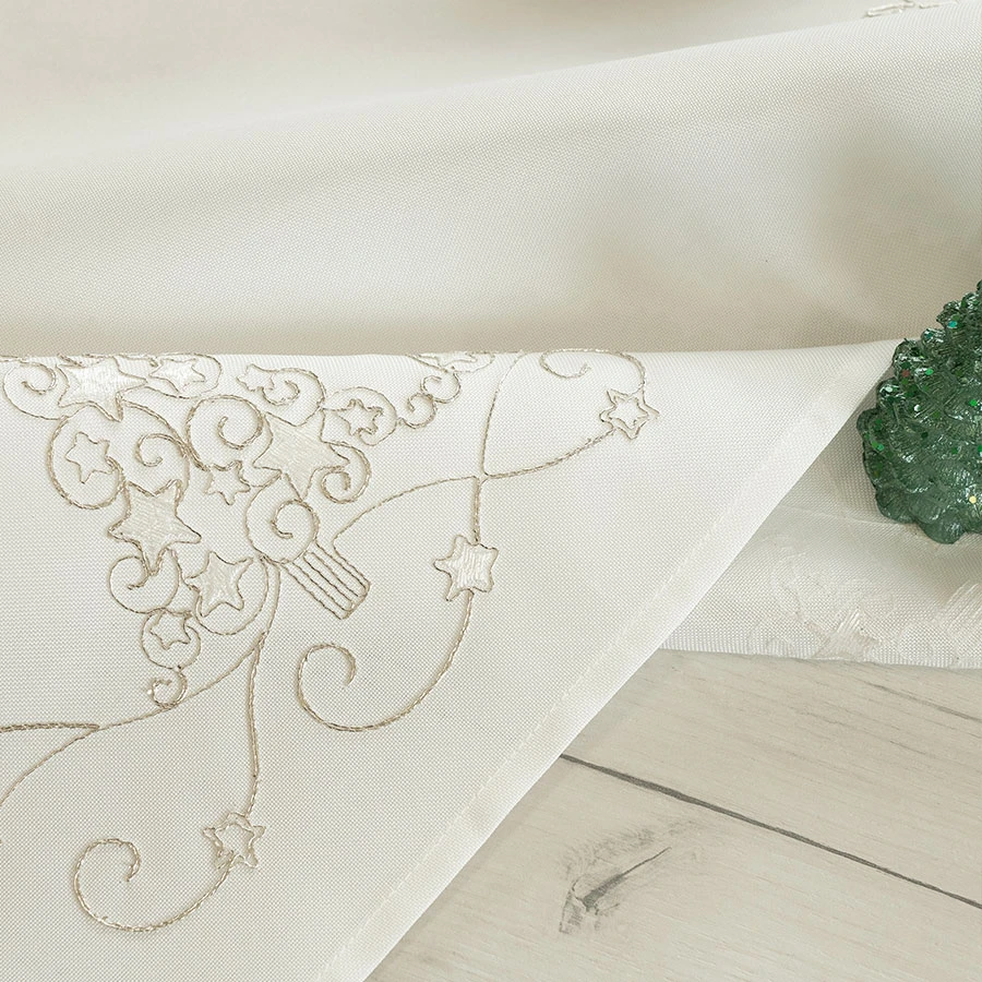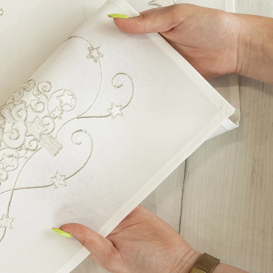 Elegancka i praktyczna serweta z wysokiej jakości tkaniny poliestrowej.Serweta z dekoracyjną nicią Luxure w kolorze srebrnym.Serweta jest wykończona na brzegach wąską listwą. Rozmiar: 85x85 cm Gramatura: 200gsm Skład: 100% Poliester