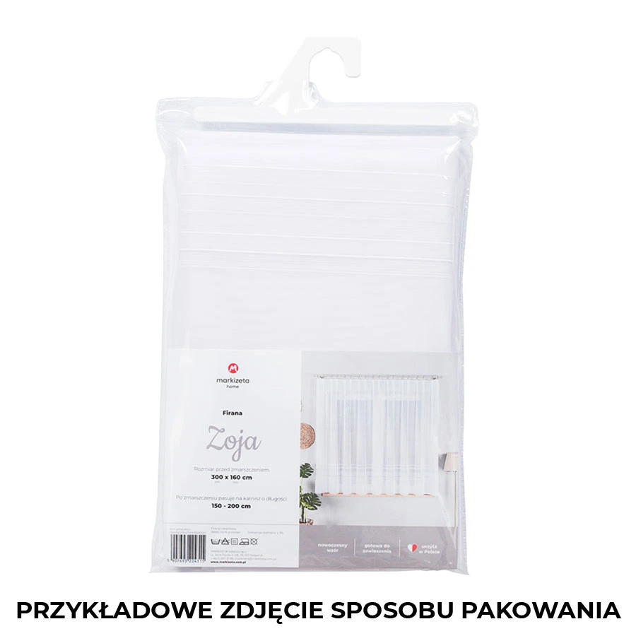 Uszyta z dzianiny żakardowej (100% poliester) firana jest łatwa w codziennym użytkowaniu i dobrze się układa. Rozmiar 250x120 cm oraz forma firany pojedynczej sprawiają, że szybko odmienisz wygląd okna bez skomplikowanego dopasowywania. Dół wykończony laserowo wytapianą krawędzią prezentuje się estetycznie, a fabryczne boki nie wymagają obszycia. Góra jest fabrycznie wykończona (bez taśmy), dzięki czemu firankę wygodnie zawiesisz na żabki.