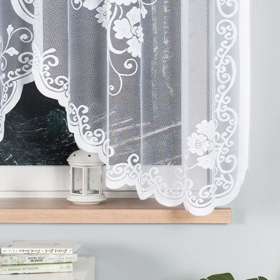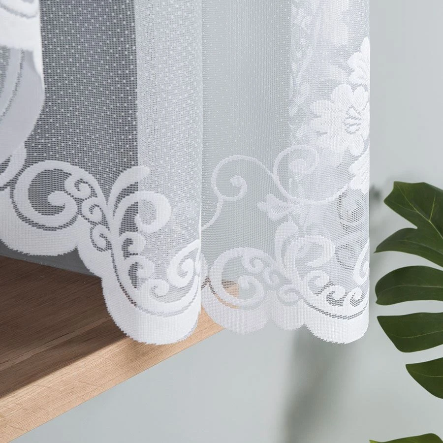 Firanka gotowa żakardowa FUKSJA to propozycja dla osób, które szukają eleganckiej, klasycznej oprawy okna w jasnym, ponadczasowym wydaniu. Biała dzianina żakardowa z kwiatowym wzorem i dekoracyjnymi ornamentami wprowadza lekkość do wnętrza, jednocześnie pięknie porządkując przestrzeń przy oknie.