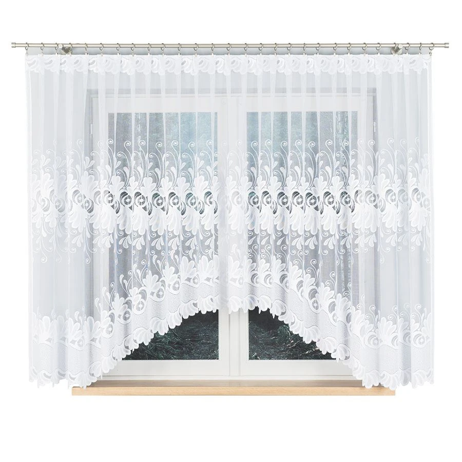 Firanka gotowa żakardowa KASJANA marki Markizeta to ponadczasowa propozycja dla osób, które cenią klasyczne firany do salonu i kuchni. Biała dzianina żakardowa z ornamentowym wzorem subtelnie rozprasza światło, dodając wnętrzu lekkości i elegancji.