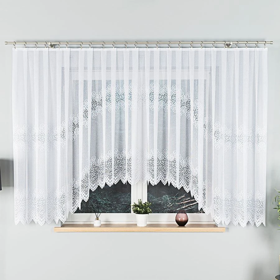Firanka gotowa żakardowa VIOLETTA w kolorze białym to propozycja dla osób, które cenią ponadczasową elegancję i dopracowane detale w dekoracji okna. Klasyczny styl i ornamentowy wzór pięknie rozpraszają światło, a podcięcie tworzy efekt lekkiej, dekoracyjnej fali.