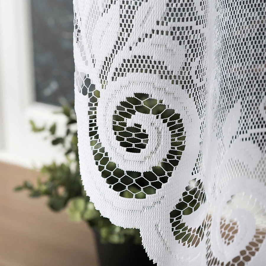 Wybierz model ROZALIA, jeśli szukasz gotowej firanki żakardowej z klasycznym wzorem i praktycznym wykończeniem.