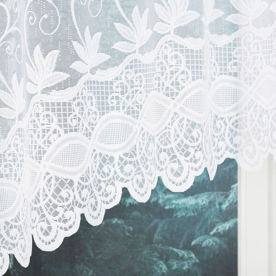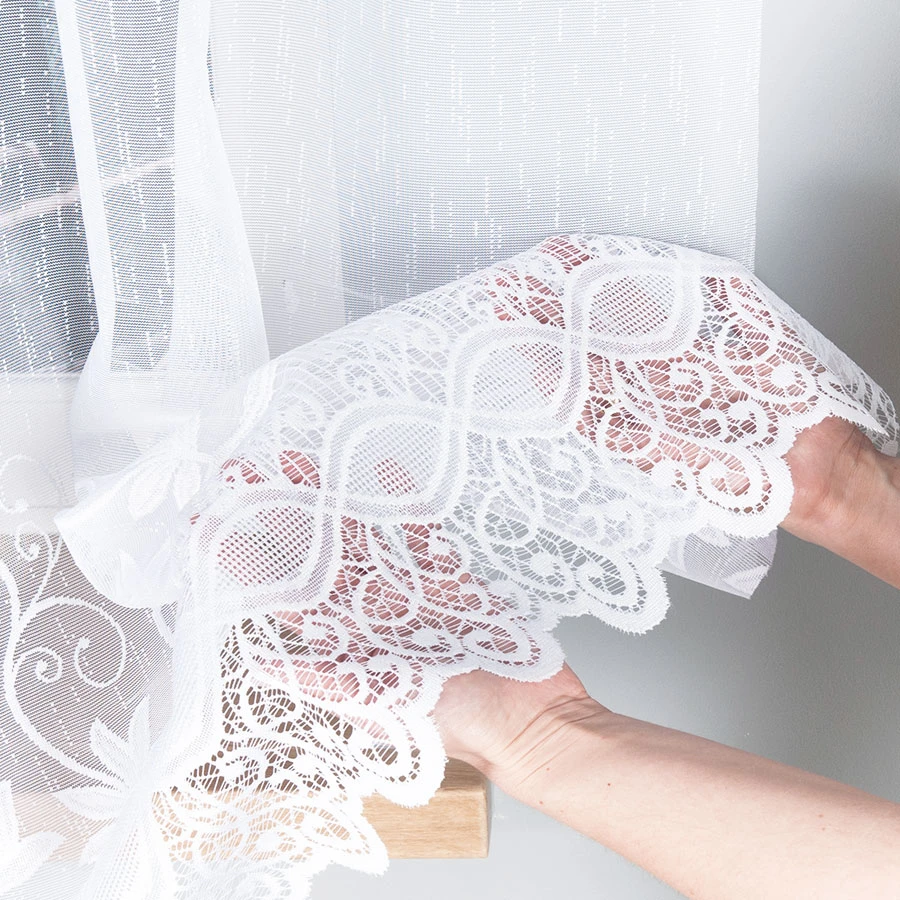 Wybierz model JOWITA i postaw na gotową firankę żakardową z dekoracyjnym wykończeniem.