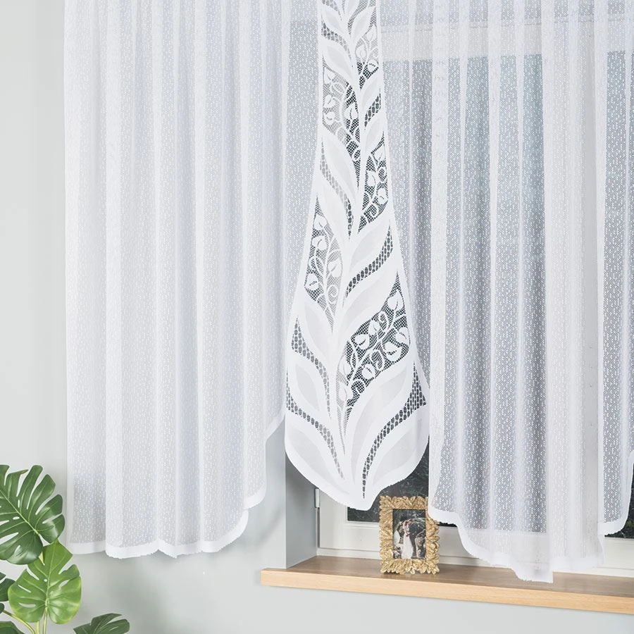 Wybierz model MELANIA, jeśli szukasz gotowej firanki żakardowej w klasycznej bieli.
