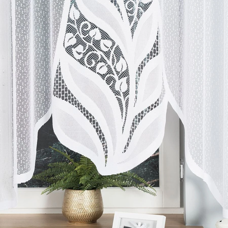 Falowana bordiura u dołu dekoracyjne wykończenie podkreśla klasyczny charakter firanki i porządkuje jej linię.