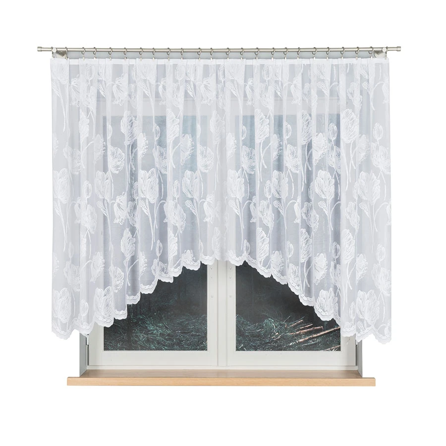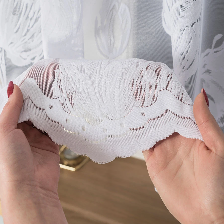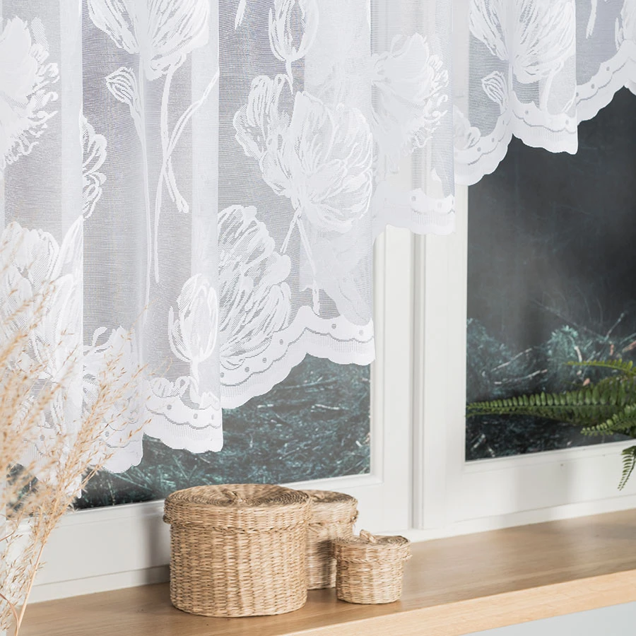 Biała firanka SONIA sprawdzi się jako dekoracja okna tam, gdzie liczy się gotowy format 350x140 cm, podcięcie oraz wyraźny kwiatowy wzór. To dobry wybór dla osób szukających żakardowej firanki z fabrycznym wykończeniem boków i ozdobnym, falowanym dołem.