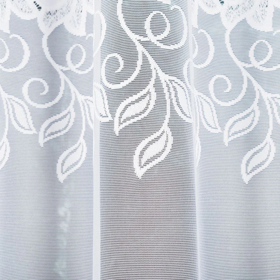 Wybierz firankę BASTIA, jeśli szukasz żakardowej, białej dekoracji okiennej z ornamentowym wzorem i estetycznym wykończeniem.