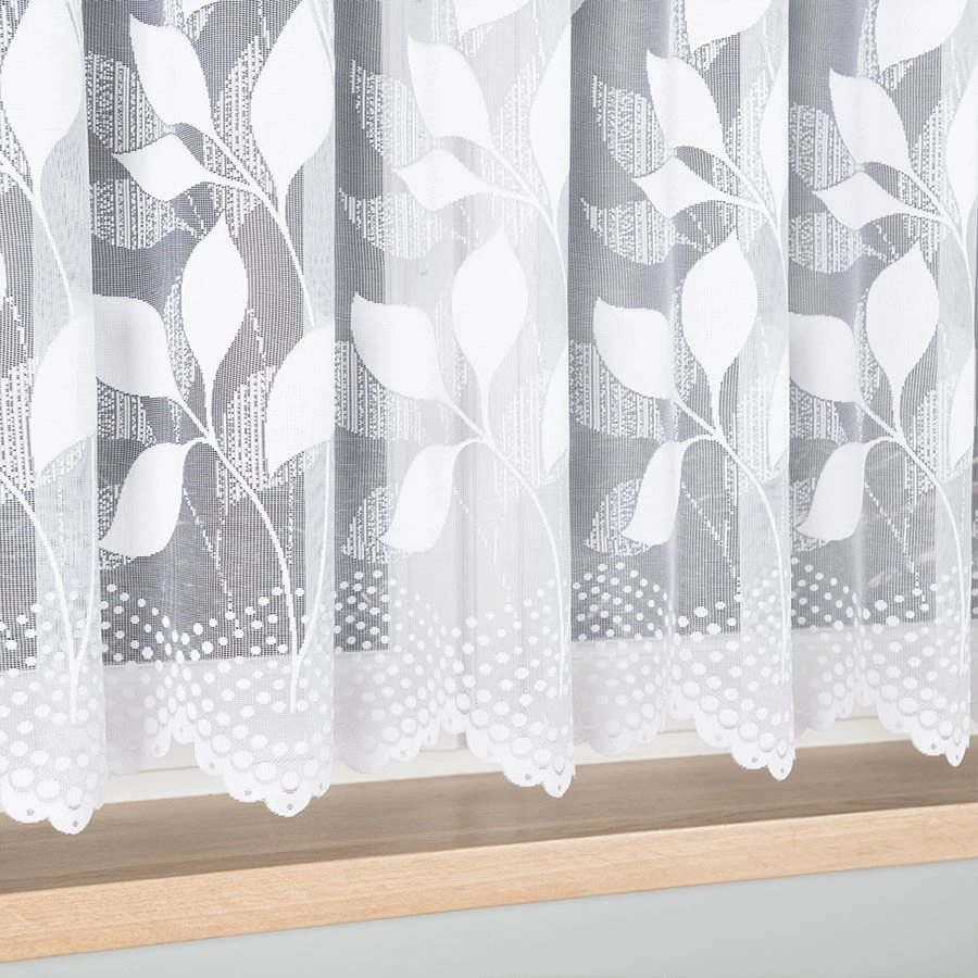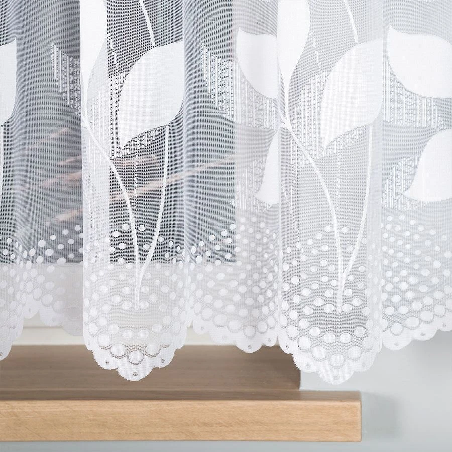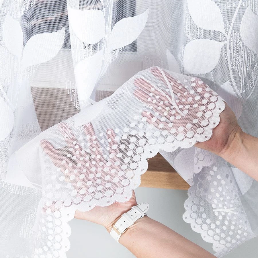 - Estetyczne wykończenie dołu – bordiura falowana podkreśla wygląd firanki i porządkuje jej linię.