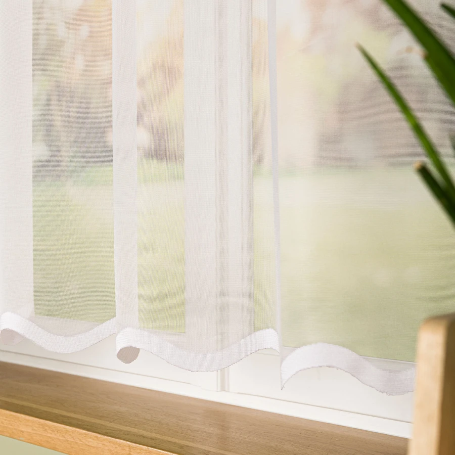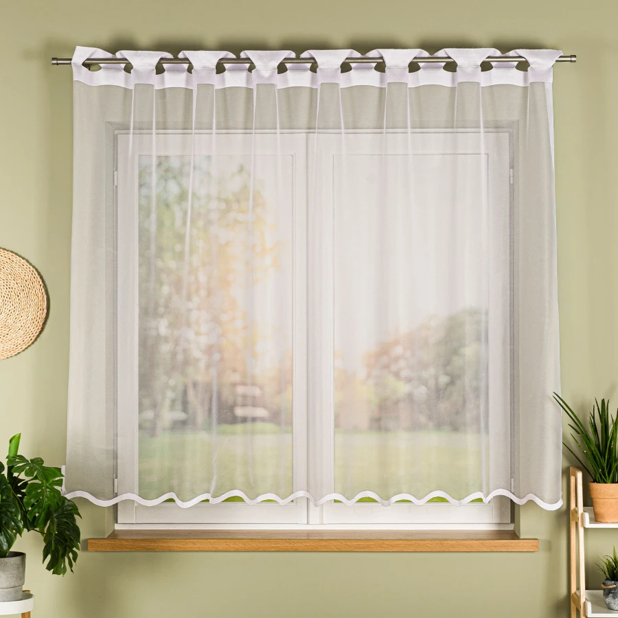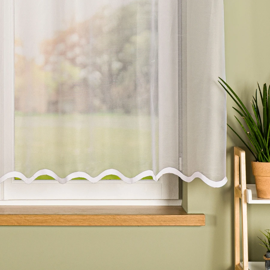 Dekoracyjny dół bordiura falowana subtelnie akcentuje dolną krawędź i nadaje firance wyrazistszy wygląd.