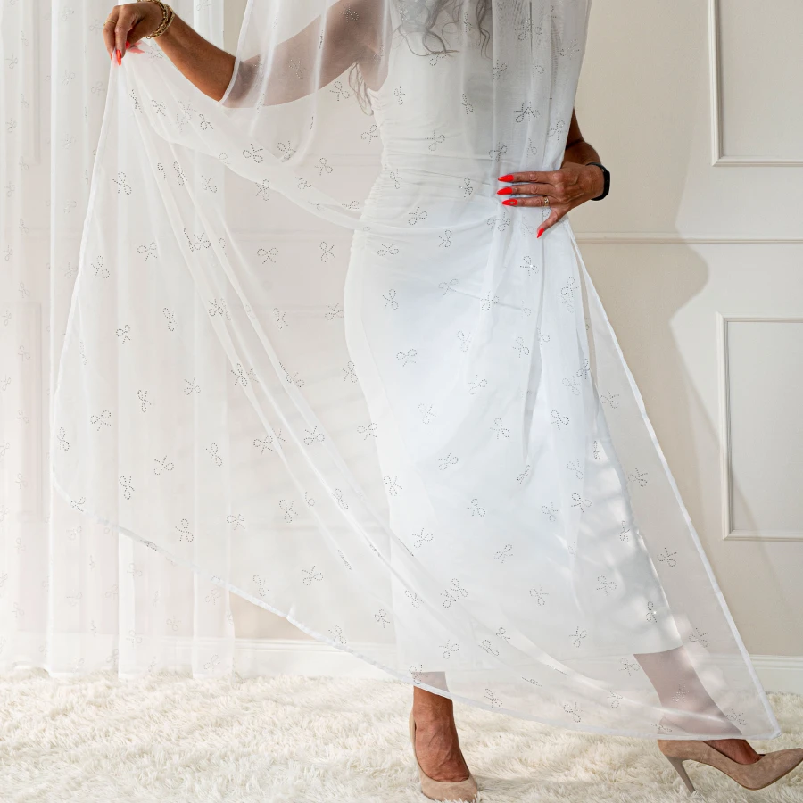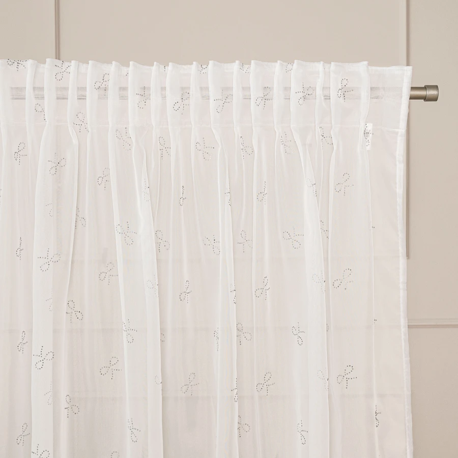 RIBBON Firana gotowa na woalu w diamentowe kokardki, na taśmie z ołowianką, szerokość 140 x wysokość 250cm, kolor 001 bia
