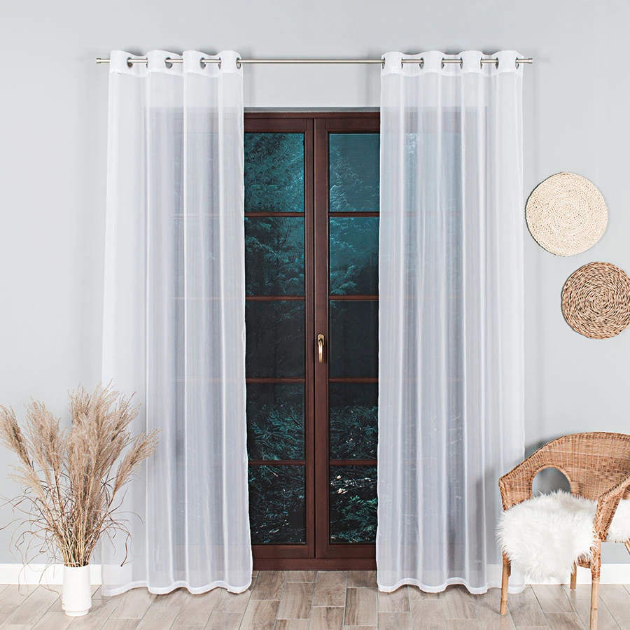 - Gładki woal lekko układa się przy oknie i zapewnia subtelny, dekoracyjny efekt.