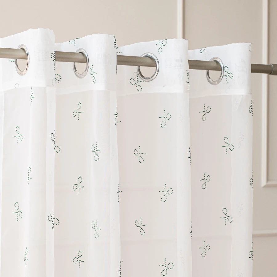 - Starannie wykończone krawędzie dzięki obszytym bokom i dołowi wpływają na estetyczny wygląd firanki.