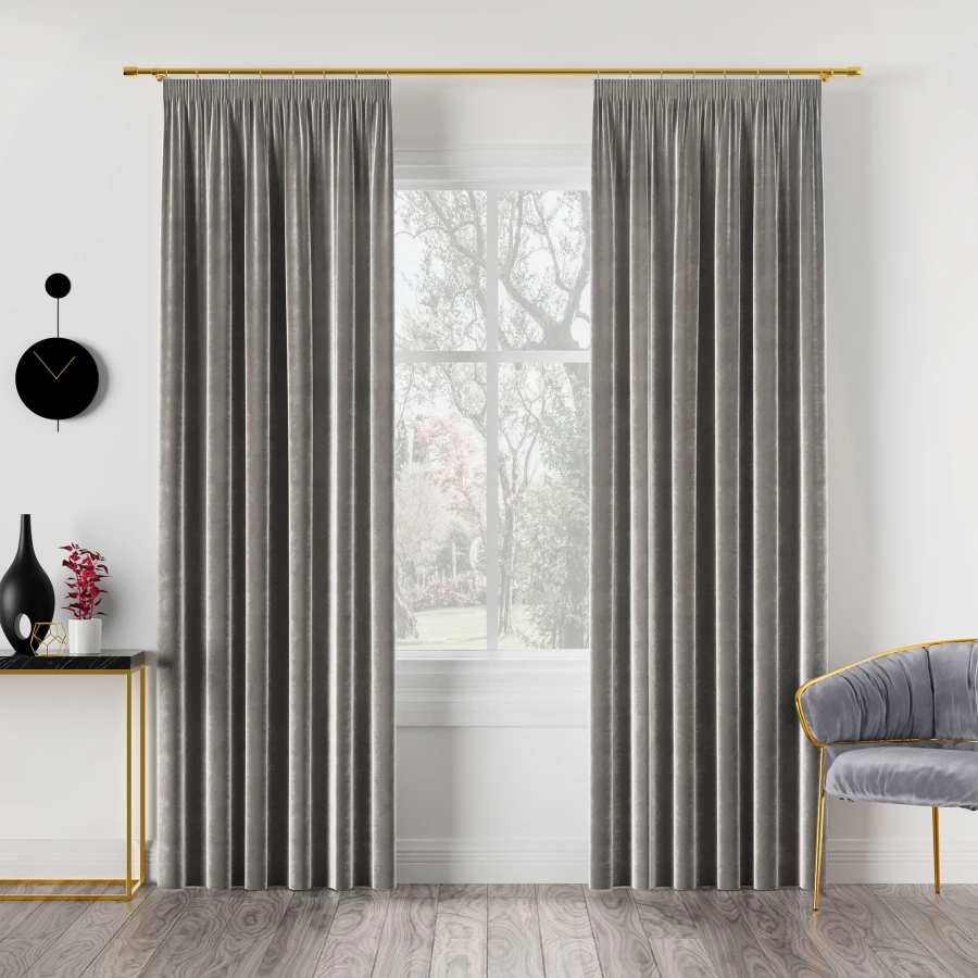 Zasłona na taśmie marszczącej welwetowa jasny szary