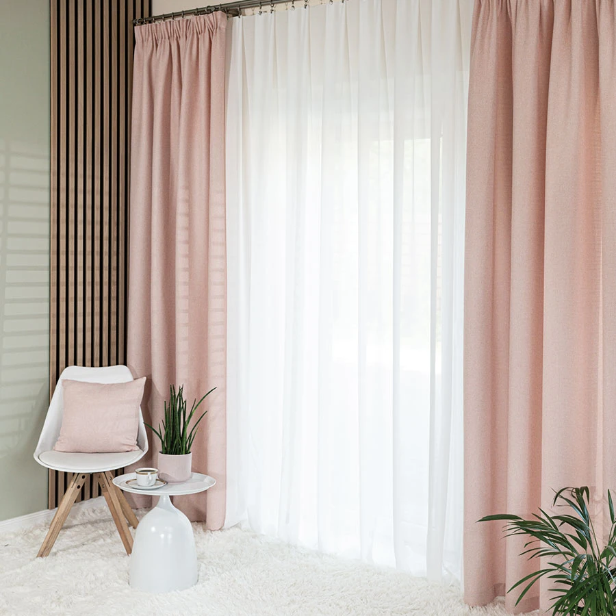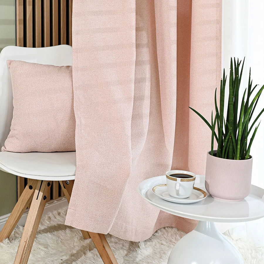 Klasyczna forma różowy kolor i prosta stylistyka sprawiają, że zasłona prezentuje się lekko i elegancko.