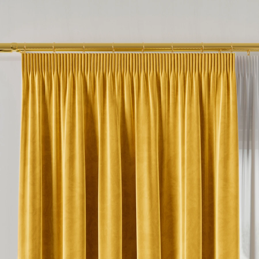 Model VELVI to gładka zasłona na taśmie marszczącej wykonana z welwetu w żółtym kolorze. Rozmiar 140x250 cm sprawia, że produkt dobrze sprawdzi się jako pojedyncza dekoracja okienna. Tkanina z 100% poliestru prezentuje się estetycznie, a staranne obszycie boków i dołu podkreśla dopracowane wykończenie. Zasłona została przygotowana do zawieszenia na taśmie, tunelu lub żabkach, co ułatwia dopasowanie sposobu montażu do karnisza i własnych potrzeb.
