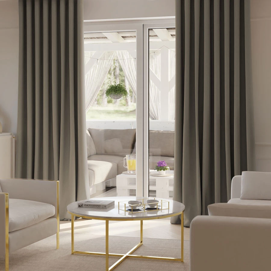 Wybierz szarobeżową zasłonę blackout SUPER BLACKOUT i stwórz spójną oprawę okna.