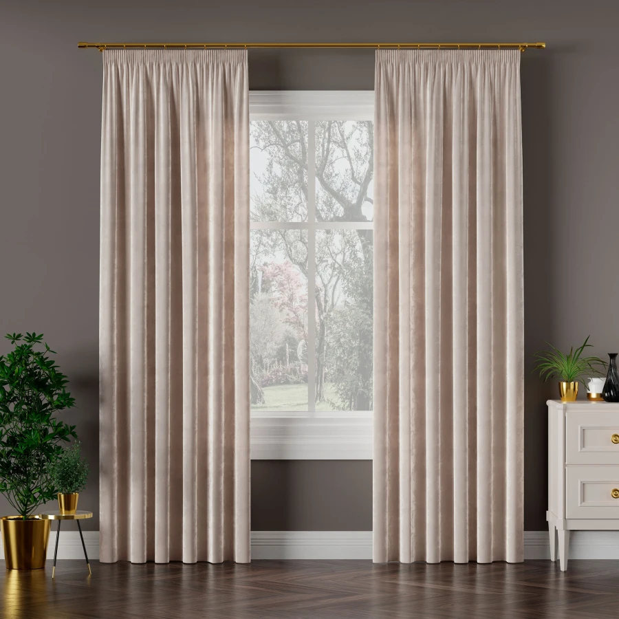Model VELVI to gotowa zasłona na taśmie marszczącej uszyta z welwetu w jasnoszarym kolorze. Gładka powierzchnia tkaniny i staranne wykończenie sprawiają, że produkt prezentuje się estetycznie i elegancko. Rozmiar 140x250 cm pozwala wykorzystać zasłonę w wielu wnętrzach, a uniwersalna kolorystyka ułatwia dopasowanie do różnych aranżacji. Zasłona została wykonana w 100% z poliestru, z obszytymi bokami i dołem oraz taśmą marszczącą u góry.