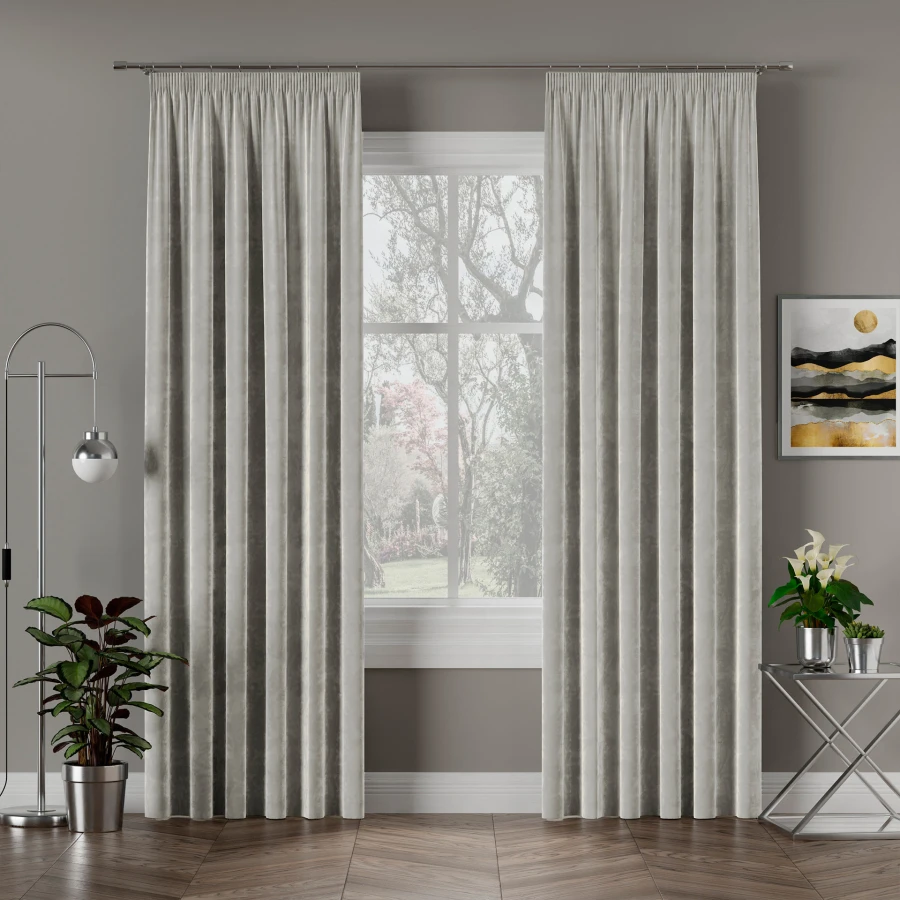 Model VELVI to gładka zasłona na taśmie marszczącej, wykonana z welwetu w szarym kolorze. Format 140x240 cm dobrze sprawdzi się jako pojedyncza dekoracja okienna, a miękka tkanina z 100% poliestru estetycznie układa się po zawieszeniu. Góra wykończona taśmą marszczącą pozwala uzyskać równomierne marszczenie materiału, a obszyte boki i dół podkreślają staranne wykonanie. To praktyczny wybór dla osób, które szukają gotowej zasłony o gładkim wzorze i eleganckim wyglądzie.