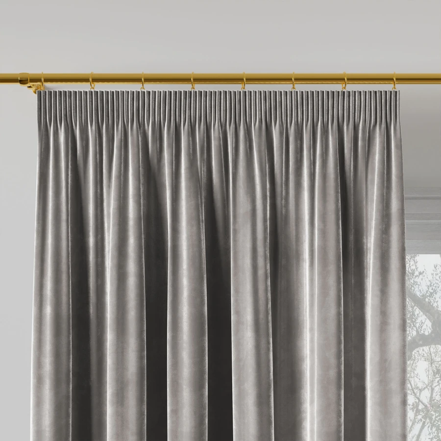 - Welwetowa tkanina nadaje zasłonie miękki wygląd i elegancką formę.