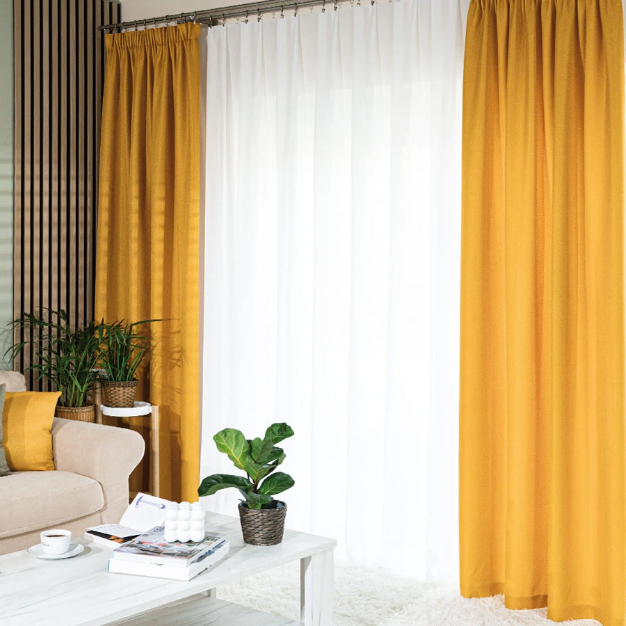 Żółta zasłona JODEŁKA sprawdzi się wszędzie tam, gdzie liczy się gotowy produkt o estetycznym wykończeniu i wygodnym zawieszaniu. To dobry wybór dla osób szukających zasłony na taśmie marszczącej z możliwością montażu także na tunelu lub żabkach.