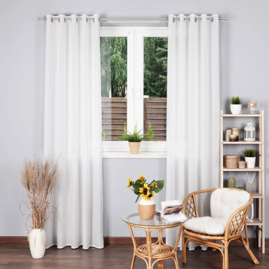 Wybierz BASIC i postaw na białą, gładką zasłonę gotową 145x300 cm z wygodnym zawieszeniem na przelotkach.