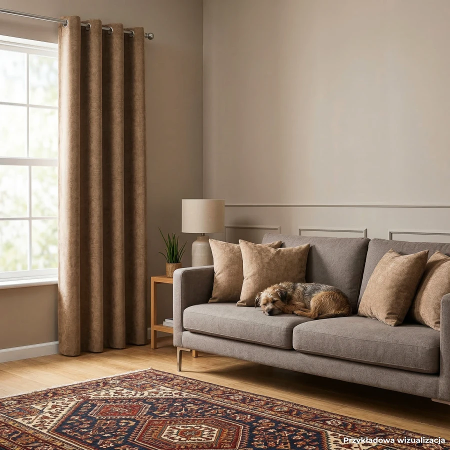Brązowa zasłona SOFT będzie odpowiednim wyborem dla osób szukających gotowej zasłony na przelotkach o gładkim wzorze i rustykalnym charakterze. To model, który łączy prostą formę, gotowy sposób zawieszania i estetyczne wykończenie.