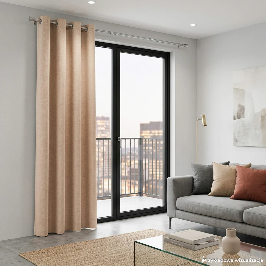 Beżowa zasłona SOFT na przelotkach sprawdzi się wszędzie tam, gdzie liczy się gotowy produkt, prosty montaż i klasyczny, gładki wygląd tkaniny. Dzięki szerokości 140 cm i wysokości 260 cm możesz łatwo dopasować ją do wybranego okna lub wnęki okiennej.