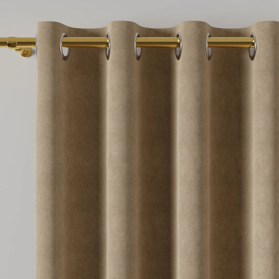 Beżowa zasłona MILAS na przelotkach sprawdzi się jako gotowa dekoracja okna w pomieszczeniach, w których liczy się klasyczny charakter i prosty, gładki wzór. Dzięki przelotkom jej zawieszenie jest szybkie i wygodne, a staranne wykończenie podkreśla estetykę całości.