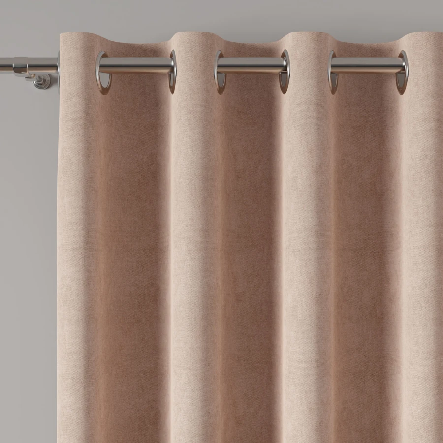 MILAS to gotowa zasłona na przelotkach wykonana z tkaniny w beżowo-różowym kolorze. Gładka powierzchnia i nowoczesny charakter sprawiają, że model prezentuje się schludnie i ponadczasowo. Rozmiar 140x260 cm pozwala dopasować ją do wielu wnętrz, a sposób zawieszania na przelotkach / kółkach ułatwia szybkie umieszczenie zasłony na karniszu. Produkt został uszyty w 100% z poliestru, z obszytymi bokami i obszytym dołem.