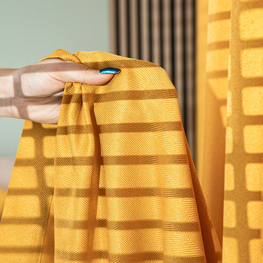 Wybierz model JODEŁKA i postaw na gotową zasłonę w żółtym kolorze z efektowną strukturalną tkaniną.
