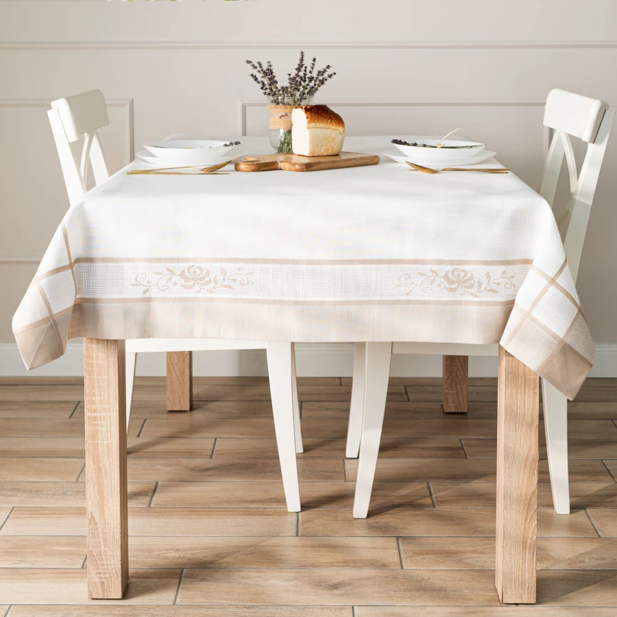 - Uniwersalny rozmiar 140x220 cm pozwala dopasować obrus do większych stołów w jadalni lub salonie.