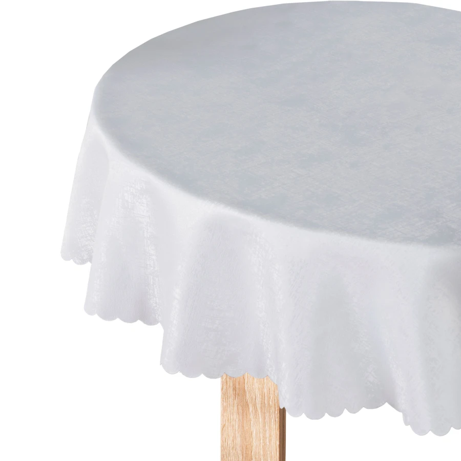 Wybierz model PELA i postaw na biały, gładki obrus wodoodporny fi 130 cm do swojego stołu.