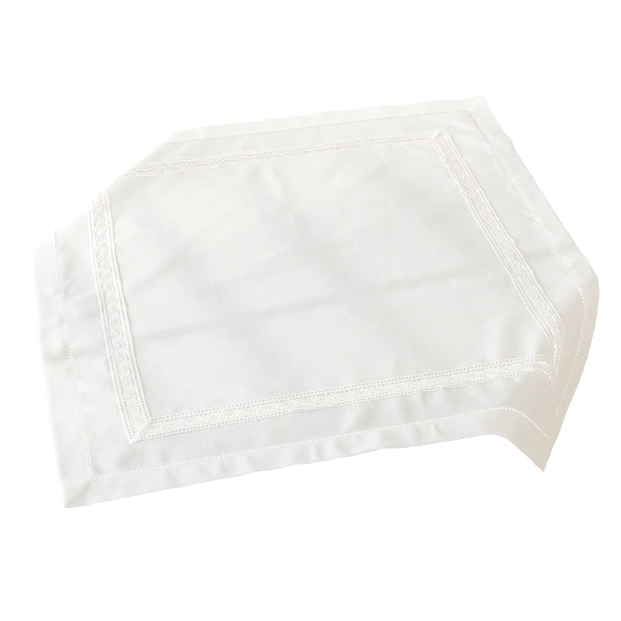 Wybierz białą serwetę SELVIA z aplikacją gipiurową i wprowadź do wnętrza elegancki, dekoracyjny detal.