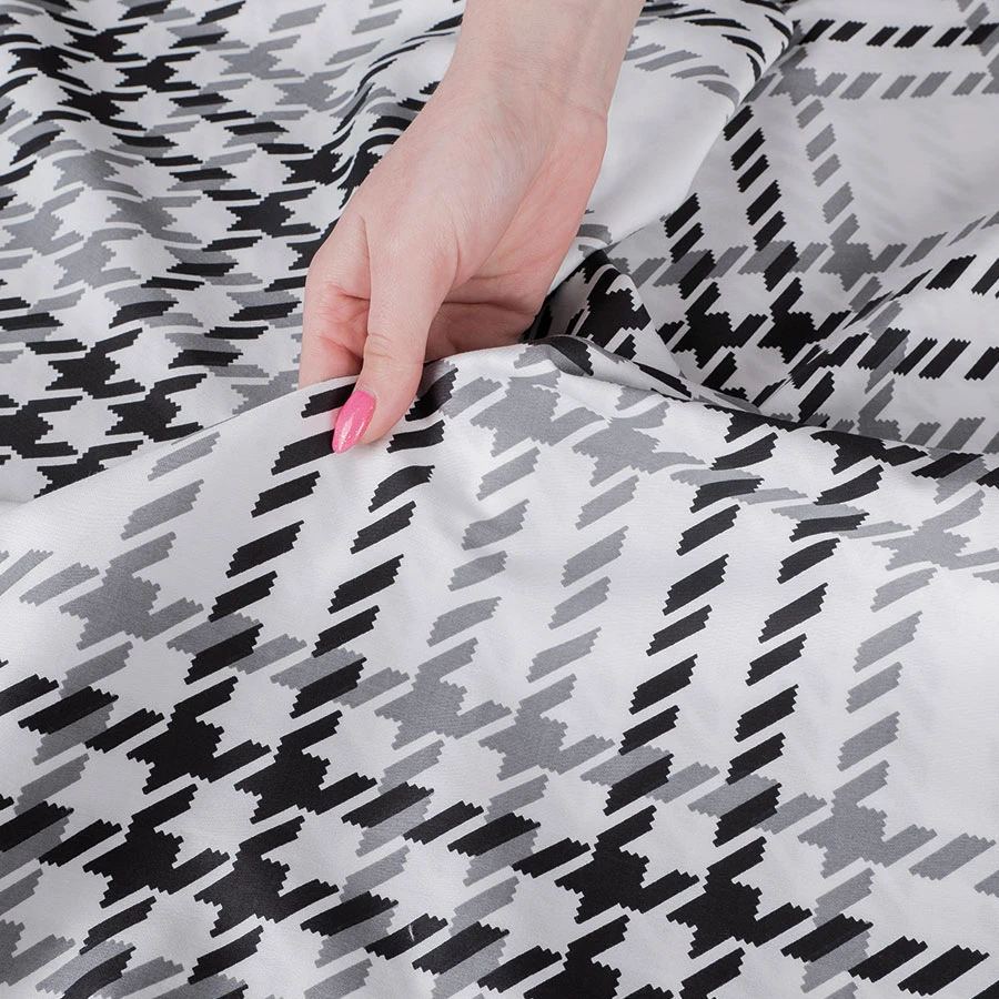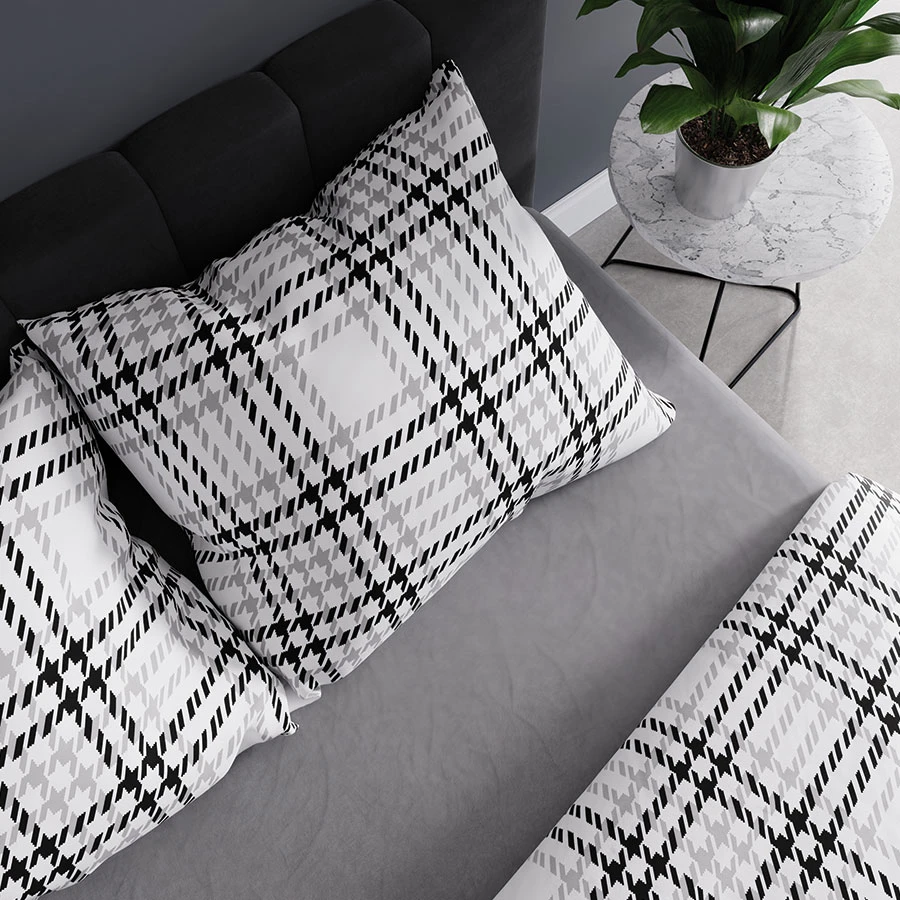 Komplet pościeli PETIT sprawdzi się jako element wyposażenia nowoczesnej sypialni. Biała satyna bawełniana z motywem kraty dobrze prezentuje się zarówno w prostych, jak i bardziej kontrastowych aranżacjach. To praktyczny wybór dla osób, które zwracają uwagę na skład, wzór i wygodę codziennego użytkowania.