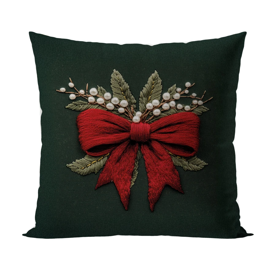 Zielona poszewka świąteczna z haftem