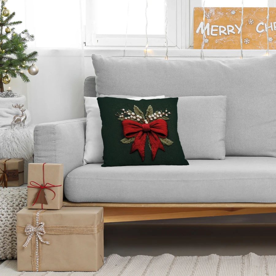 Poszewka sprawdzi się jako dekoracja poduszki w salonie, sypialni lub innych domowych wnętrzach, szczególnie w aranżacjach świątecznych i glamour. Zielony kolor, haft oraz dekoracyjny motyw tworzą wyrazisty efekt, który może podkreślić sezonowy charakter wystroju.