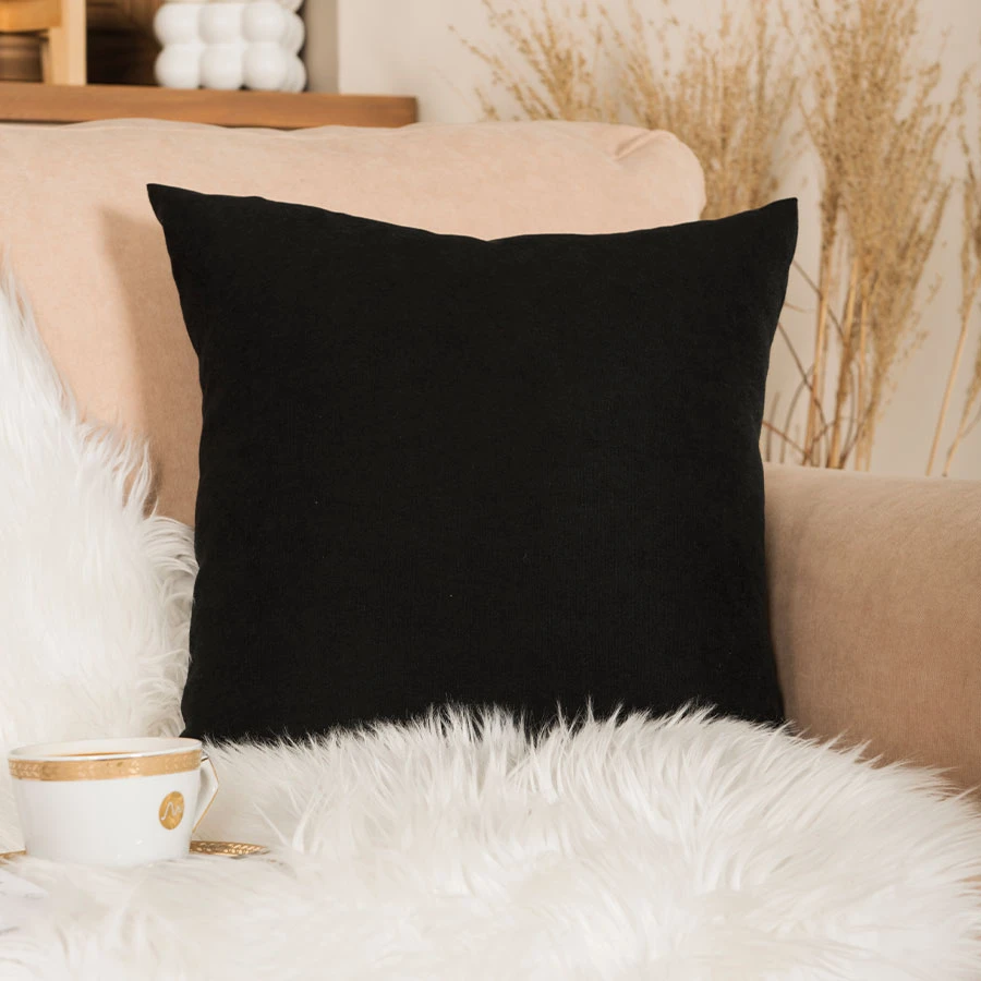 MILAS to dekoracyjna poszewka welurowa w kolorze czarnym, która łączy prostą formę z nowoczesnym wyglądem. Gładka powierzchnia bez zdobień sprawia, że model prezentuje się uniwersalnie i estetycznie. Rozmiar 40x40 cm pozwala dopasować ją do poduszki o standardowych wymiarach, a praktyczny zamek błyskawiczny ułatwia zakładanie i zdejmowanie. Poszewka została wykonana z tkaniny o składzie 100% poliester i gramaturze 150-200 g/m2.