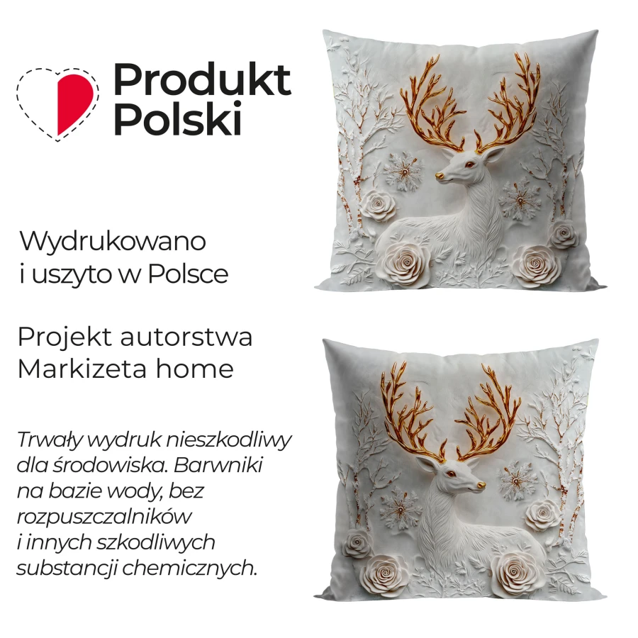 JELONEK Z EFEKTEM 3D to poszewka dekoracyjna wykonana z welwetu w szarym kolorze. Model w rozmiarze 40x40 cm wyróżnia się nadrukiem oraz wzorem zwierzęcym, który przyciąga uwagę i podkreśla ozdobny charakter produktu. Tkanina o gramaturze 150-200 g/m2 została wykonana w 100% z poliestru, dzięki czemu poszewka dobrze prezentuje się w codziennym użytkowaniu. Praktyczny zamek błyskawiczny ułatwia zakładanie i zdejmowanie poszewki, a tolerancja wymiaru wynosi +/- 3%.