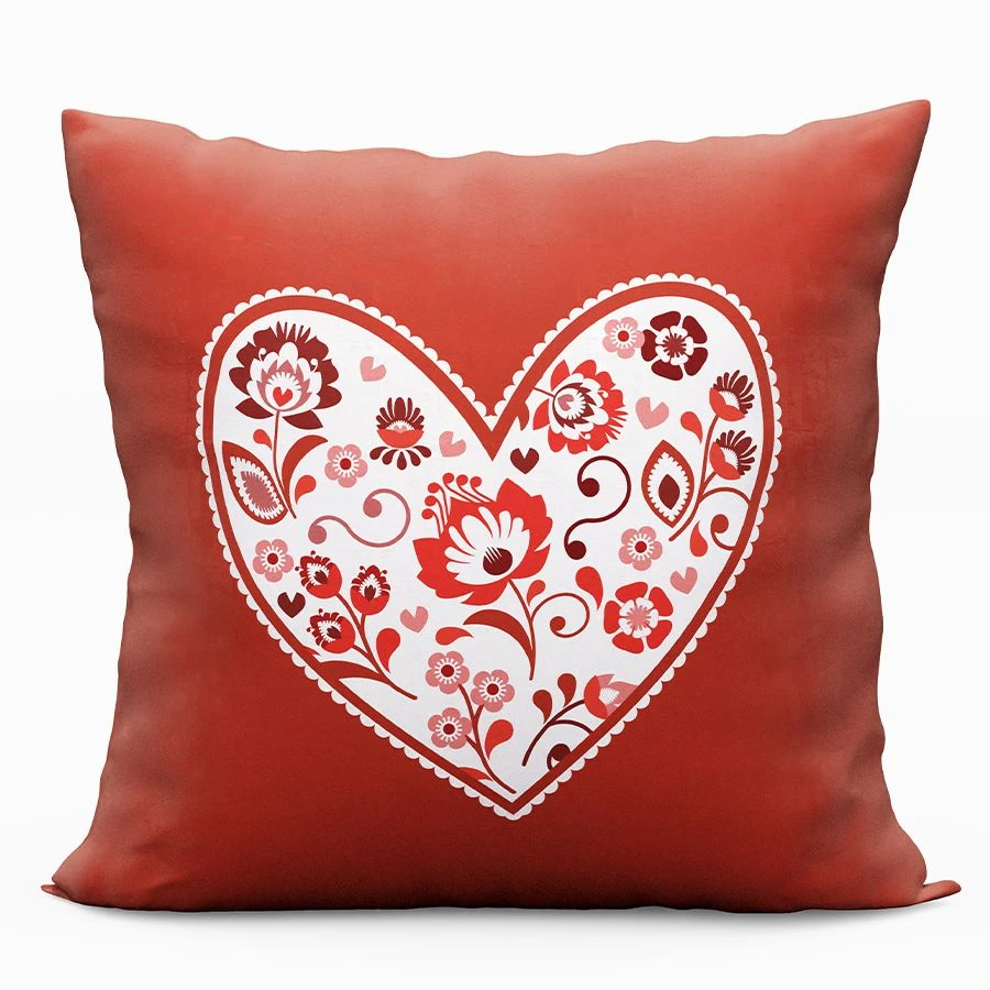 FOLK LOVE to poszewka dekoracyjna wykonana z welwetu w czerwonym kolorze, dostępna w rozmiarze 40x40 cm. Model przyciąga uwagę folkowym nadrukiem, widocznym na froncie, który tworzy wyrazistą dekorację poduszki. Tkanina o gramaturze 150-200 g/m2 została wykonana w 100% z poliestru, dzięki czemu całość prezentuje się estetycznie i zachowuje przyjemną w dotyku powierzchnię. Poszewka posiada zapięcie na zamek błyskawiczny, co ułatwia jej zakładanie i zdejmowanie.