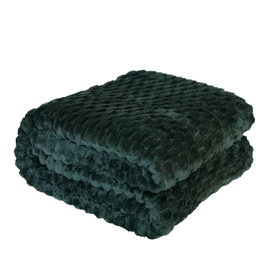 Wybierz koc MIKOS, jeśli szukasz modelu z mikrofibry w butelkowozielonym kolorze i praktycznym rozmiarze.