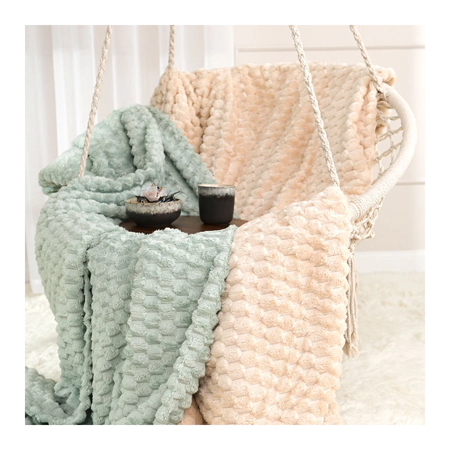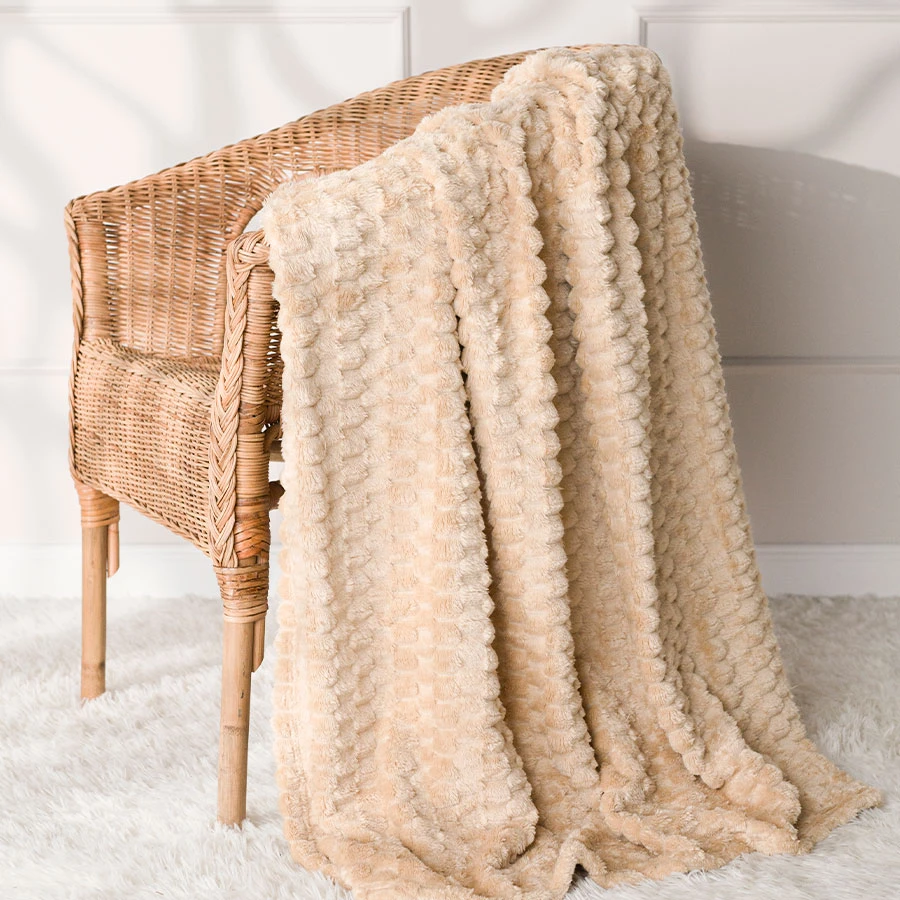 Beżowy koc dekoracyjny do domu